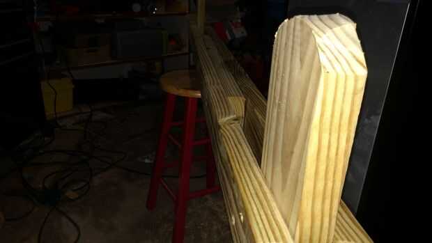 Recoger esa sección de 2 x 6 sobrantes y cortar por la mitad.
