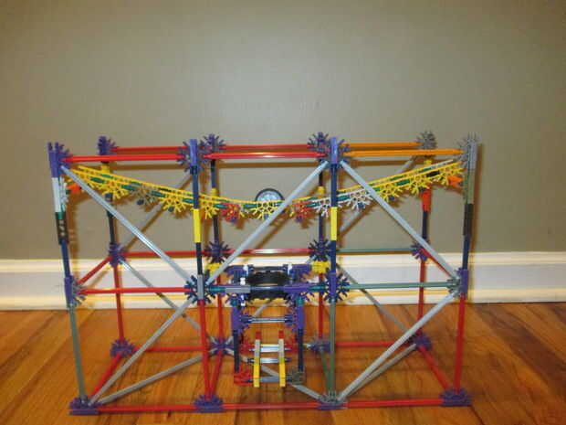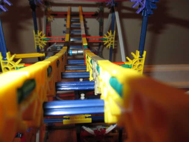 Muchos constructores de maquinaria de la bola (¡ incluyendome!) utilizan la misma idea básica de un elemento llame a un balancín. Para este elemento, una bola rueda hacia adelante y hacia atrás en la pista curva hasta que se detenga. Entonces el dumper lanza la bola. Aquí está mi versión de ese elemento. Abajo está la lista de piezas.