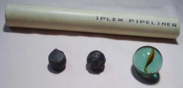 Dos plomos de pesca del tamaño de canicas.