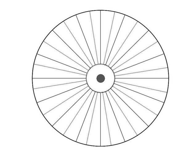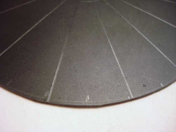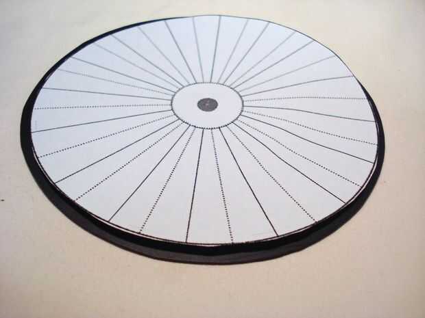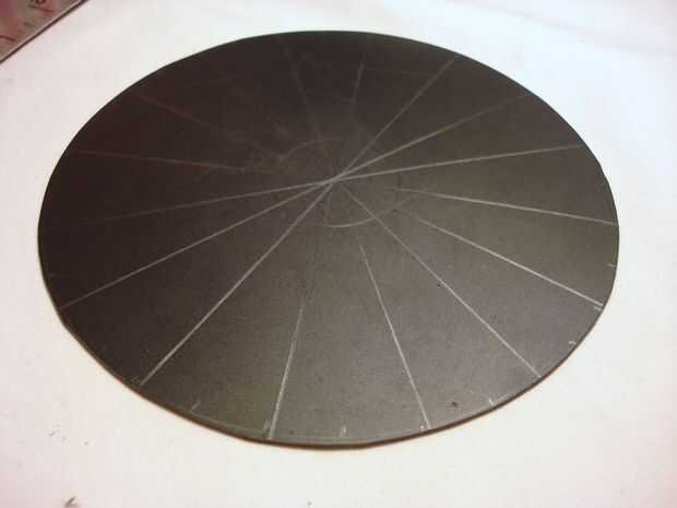 milímetros más grande y luego la plantilla. Utilizar la brújula, para que pueda obtener un buen círculo, verás por qué en un minuto. Ahora tome la plantilla y ponerla encima de su corte un círculo y marcar un poco en el borde del círculo de plástico por cada una de las líneas sólidas en la plantilla. Con una regla de conectar las marcas como en el cuadro 3. Luego use un compás para hacer un círculo con un radio de 1
