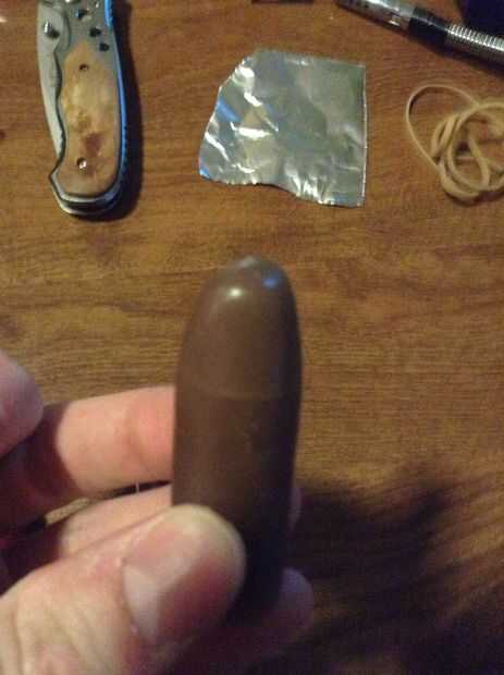 Usted también quiere estar seguro de que la bala no empieza a caer en vuelo, para hacer esto que usted necesita para asegurarse de que el centro de gravedad está más cerca de la punta que el centro geométrico de la bala (longitud sabio). Si no es cortada entonces más cera de la cavidad en la parte posterior.