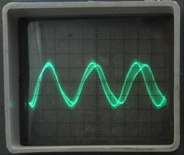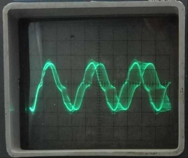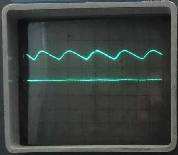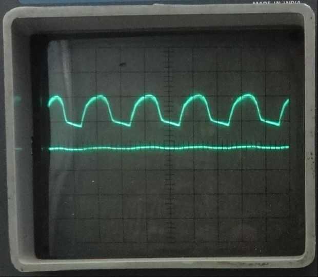 Se ve el voltaje del punto medio de aproximadamente 200 voltios DC con una ondulación de 200 voltios a 50 Hz.