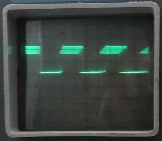 La tensión de unidad de unidad de medio puente salida a la carga en el Pin 4 del transformador toroidal es un 60kHz nominal onda cuadrada modulada por la tensión de ondulación de CA a 50 Hz.
