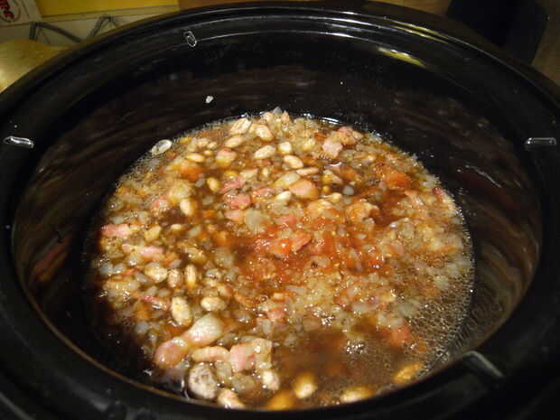 Muchas recetas de judías al horno Boston convocatoria de cerdo salada, pero encuentro que algunos tocino de país de corte agradable, libre de crueldad es más fácil poner mis manos en y sólo como sabroso. Utilizo una olla de cocción lenta para esta receta, pero si tienes una olla de cerámica de grano se puede cocinar allí en el horno. Estos granos son grandes como cena, o mi sugerencia es comerlos sobre huevos y tostada (o naan, como en la imagen) para un buen desayuno inglés. Los granos Mantén durante bastante tiempo, así que usted puede experimentar con diferentes maneras de comerlos. También se puede cocinar pan Moreno o pan como acompañamiento, para un enfoque más tradicional.