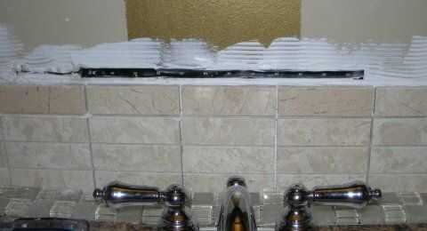 Utilizando la llana extensión del pegamento del azulejo. Centro de la tira del LED (confía en mí, mucho más fácil hacerlo antes de pegar los azulejos arriba!)