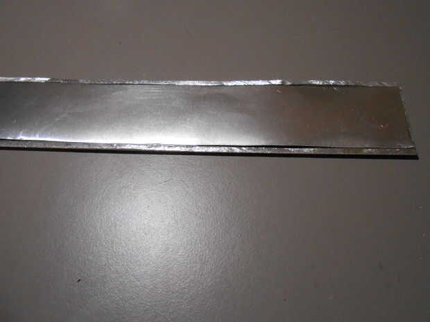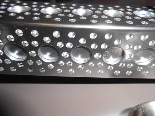 Después de cortar la chapa a la medida utilicé sobre todo loco pegamento / pegamento caliente para mantener el metal de hoja en su lugar... y en los agujeros que requieren de la perforación para los tornillos de un pequeño trozo de madera al otro lado del taladro para mantener el metal de hoja presionado contra el canal de aluminio durante la perforación del agujero, de esa manera garantiza un agujero limpio sin deformación de la chapa.