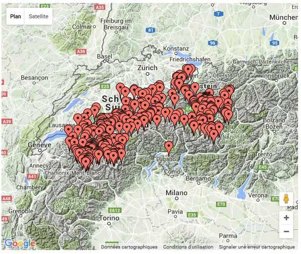En 20 años (1995-2015), cientos de personas murieron en avalanchas en Suiza (mapa superior).