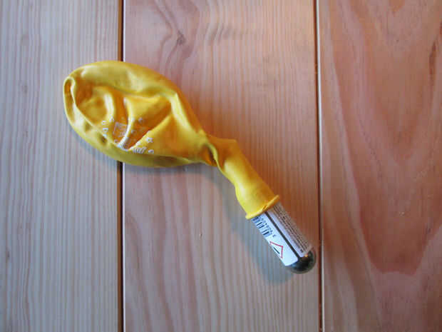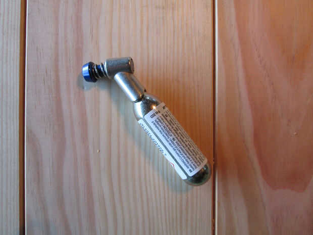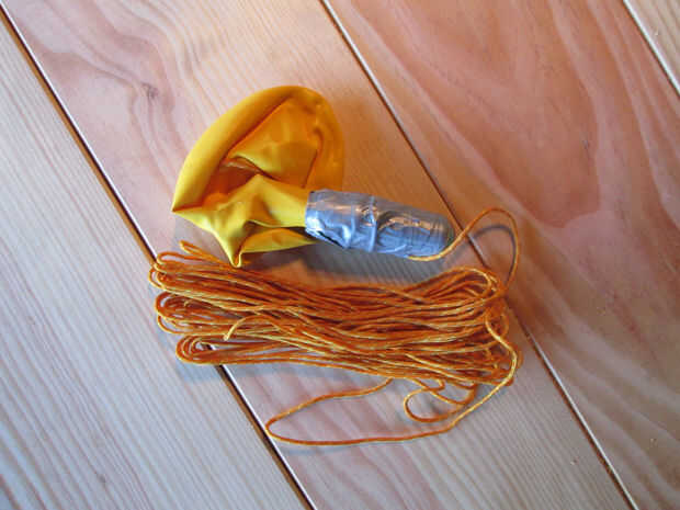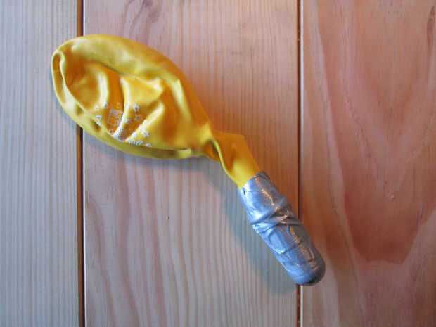 Tornillo de presión para la liberación rápida, insertar ambos a mitad de camino en el globo, sello de la junta con powertape y añadir paracord.