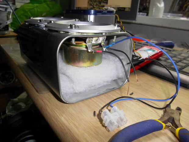 Hola chicos,Aquí está mi primera inescrutable proporcione información para hacer la siguiente mejor aún!Este boombox es aprovechando el espacio limitado de un compartimiento de la guantera de un viejo scooter 80cc Yamaha Beluga (2da Gen y volver a la