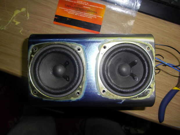 Así que después de la goma se te seca solo que cable altavoces y la batería en el módulo de mp3. Antes he usado y viejo teléfono a mi módulo de alimentación. Puesto que necesita 3.7 V y telefonos moviles viejos tienen voltaje exacto en sus baterías. Pero después de algún tiempo compré León 3,7 4000 mAh. Solo dura como 10 veces más esta manera :) después de todo solo pon en lugares. Usé pegamento de goma, para sellar los altavoces y el módulo de mp3 en el lugar, para que no escape sonido. agujero pequeño se quedó en el reproductor de mp3 debido a que IR Transmisor fue construido en lugar muy extraño :) Después sólo pop la caja juntos y listo :)
