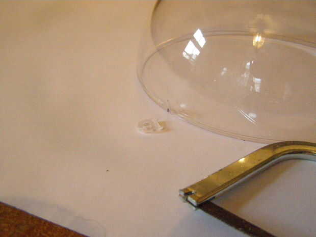 Tomar el serrucho y Sierra los puntos que están asomando. Las bolas transparentes necesitan ser redondo.