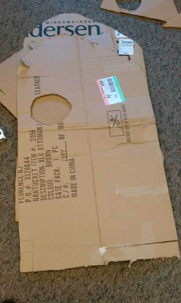 4. corte un orificio de diámetro de 4 pulgadas en cada pieza cerca de la parte curva para hacer los agujeros del brazo