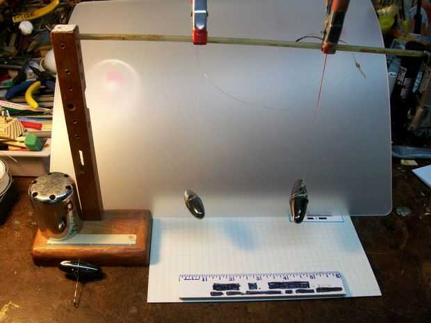 La base de un 1/4 en.  madera de la capa a la que se monta una barra vertical de 8 pulgadas de alto. Esto puede ser cualquier longitud como tras experimentar todo con alturas. .
