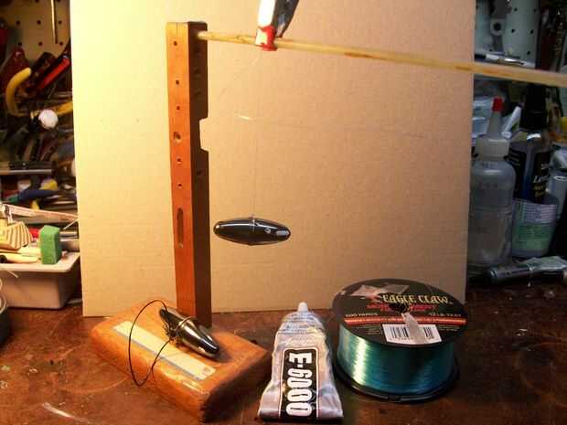 Para montar en un palo había utilizado un trozo de madera y perforar dos agujeros y 6-32 tornillos 1 pulg LG para sostener las varillas. Si tienes material disponible, puede crear su propia suspensión. Puede utilizarse una caja de cartón grande con varillas insertadas en la parte superior.