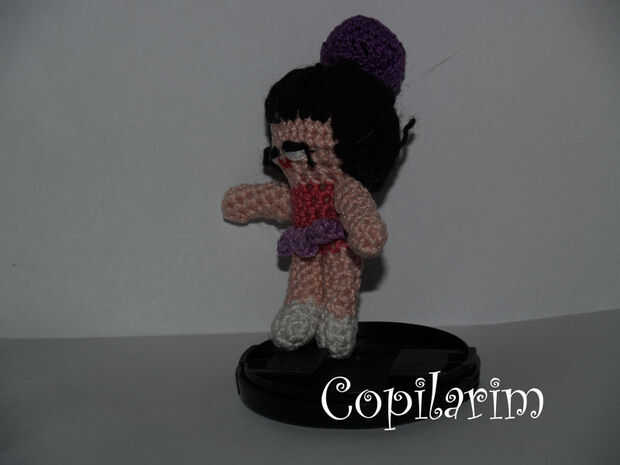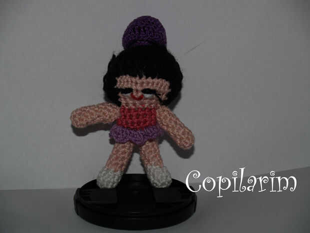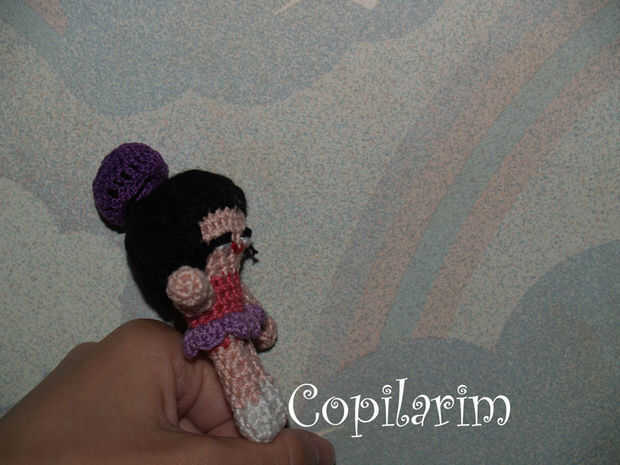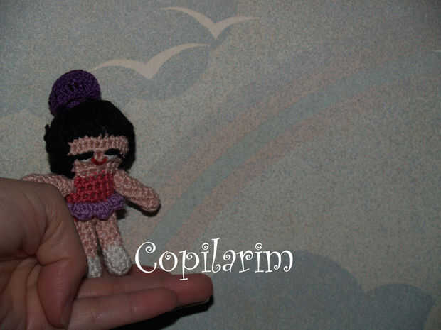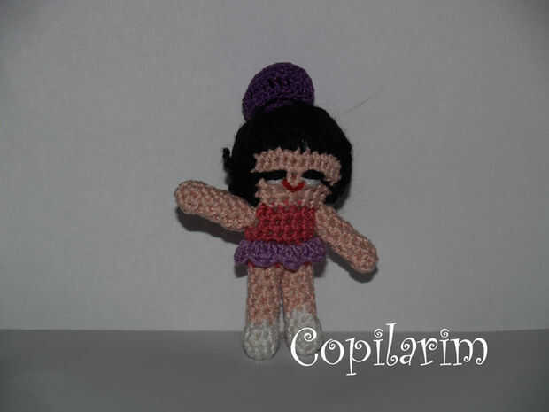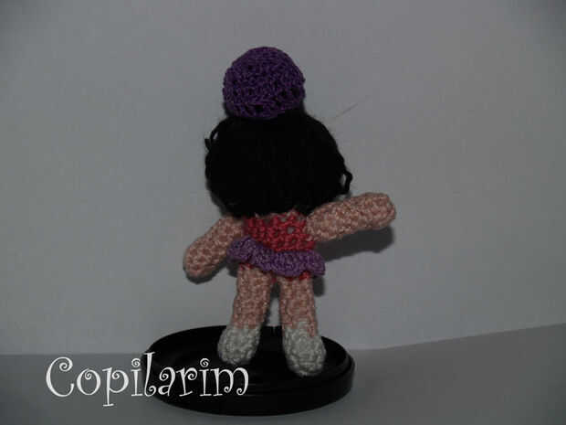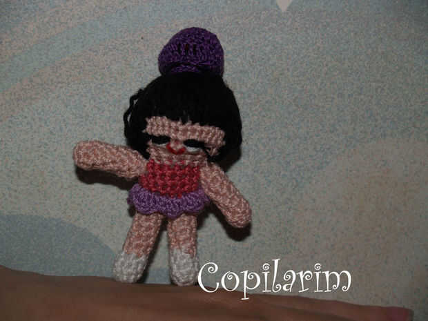 esta es la bailarina ULTRAVIOLETA que he hecho (lo siento no tengo fotos no durante la making..:(). S una muñeca amigurumi (como en todos mis amigurumis muñecas/juguetes he hice el patrón). He estado trabajando en rondas, con punto bajo. La falda se une al cuerpo. Yo he usado acril por el pelo y parte oscura en los ojos, algodón para el resto (y los ganchos de 2.5mm y 1mm). Ella es de unos 8cm de altura. Y ella tiene su propio arco iris:). Espero que les guste de ella!