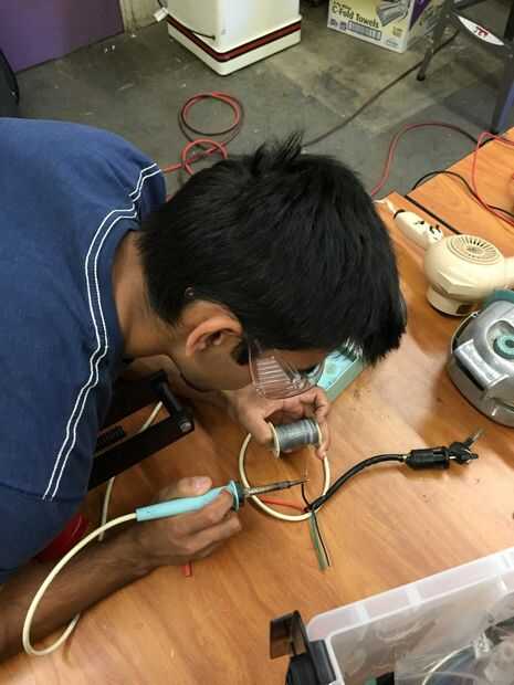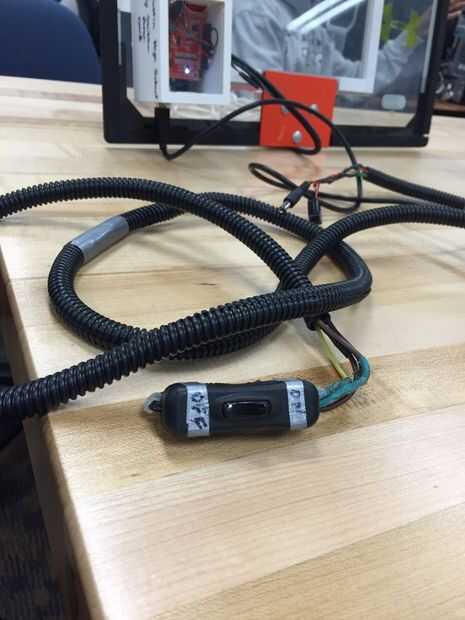 Había que crear un interruptor para nuestro sistema iniciar y detener a comando de la persona. Tenemos que pelar los cables y conectarlos a los cables más largos en orden del conmutador llegar al jugador del tablero que es de 10 pies de alto. Tuvimos que poner un cable de mediano que es alrededor de 6 pies. Para tener éxito la electricidad pase por el alambre, tuvimos que soldar los cables de cobre entre sí. Entonces tuvimos que aislar el alambre abierto con un envoltorio como un peligro para la seguridad.