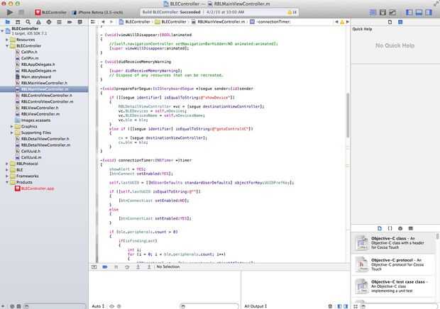 Utilizamos software de XCode de Apple para crear la aplicación, BallerStats. Hemos integrado un código de una aplicación de código abierto llamada escudo BLE RedBear laboratorios en la aplicación personalizada. Esto proporcionó las capacidades bluetooth necesarias para nuestro proyecto. También utilizamos PhotoShop para crear nuestro logotipo personalizado para nuestro grupo, OASIS. Finalmente, hemos sido capaces de cambiar el nombre del escudo se usa tanto el lado Arduino código como el código del lado del teléfono.