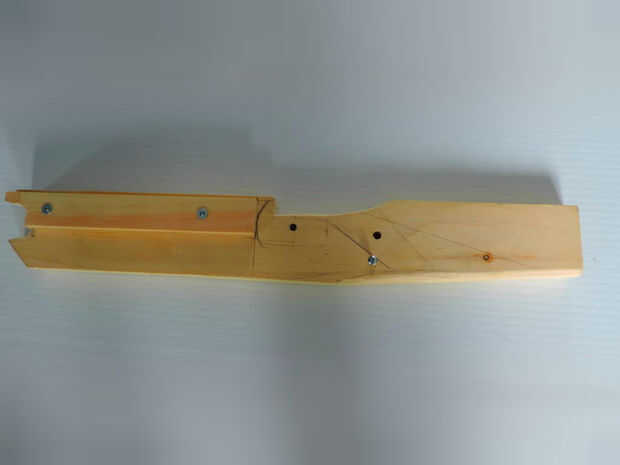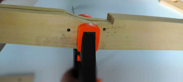 Poner tornillos donde te Xs fijar el soporte del perno entonces perfore el agujero de 1 pulgada en la parte frontal de la ballesta. Asegúrese de que el soporte del tornillo se alinea con el resto del cuerpo de la ballesta y a predrille su agujero.