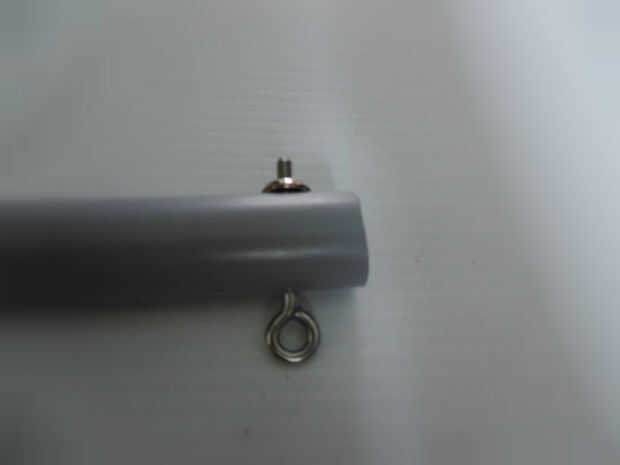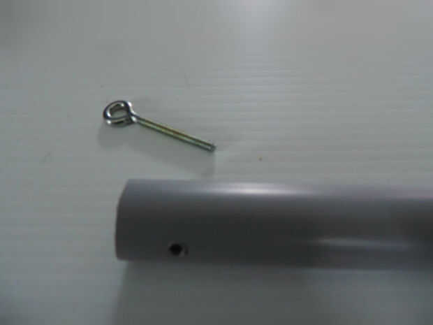 Poner la argolla por un lado, añadir espaciadores (arandelas) y luego una tuerca del final.