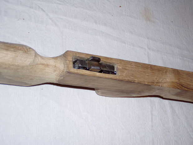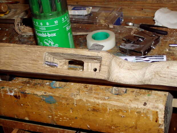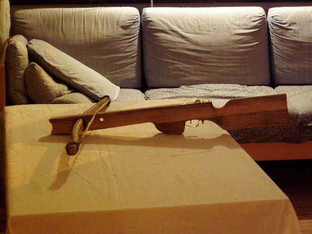 Se trata de una ballesta que construido en 2002 para un amigo. En aquel momento trabajaba como webprogrammer así mis habilidades y herramientas no fueron lo que son hoy en día después de la enseñanza de carpintería para los últimos tres años. Veo muchos errores embarazosos que hice pero ojala a evitarlos.