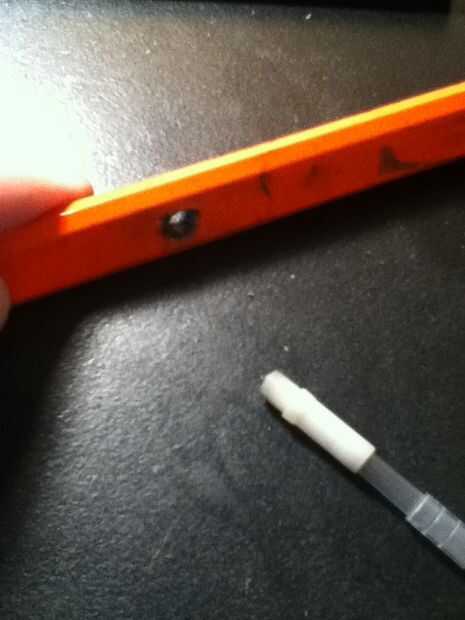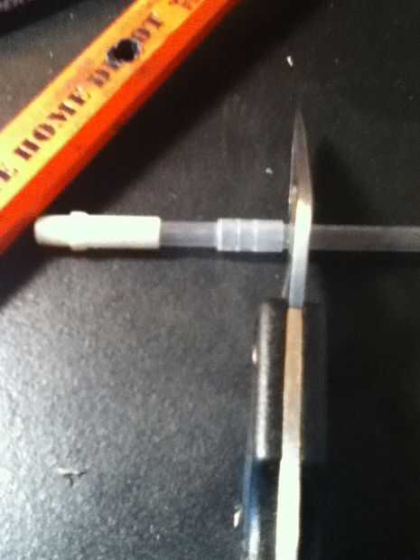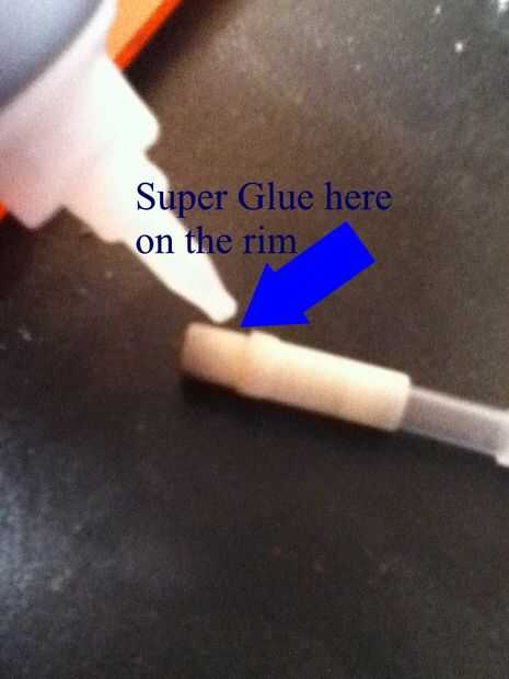 entonces super pegamento alrededor del borde de la parte que a enroscar la tapa para no pegamento la parte viene hacia fuera cuando usted pulse sobre el lápiz, luego coloque la parte del lápiz en el orificio y dejar secar, y que su disparo cosita