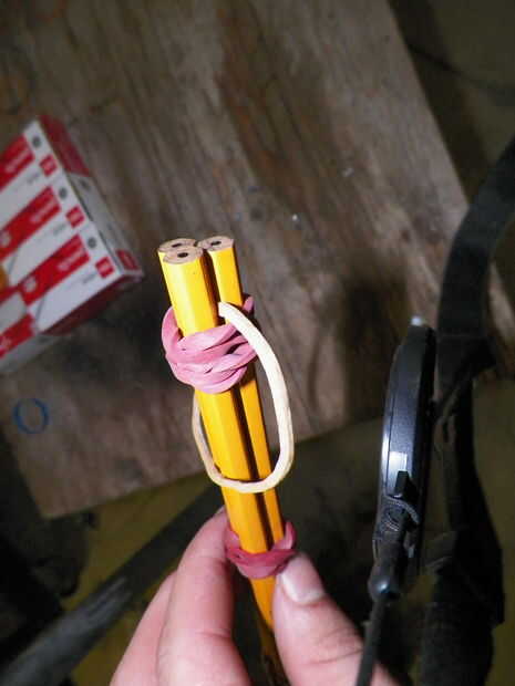 2. Deslice una goma más en forma está pellizcado entre el dos y un lápiz