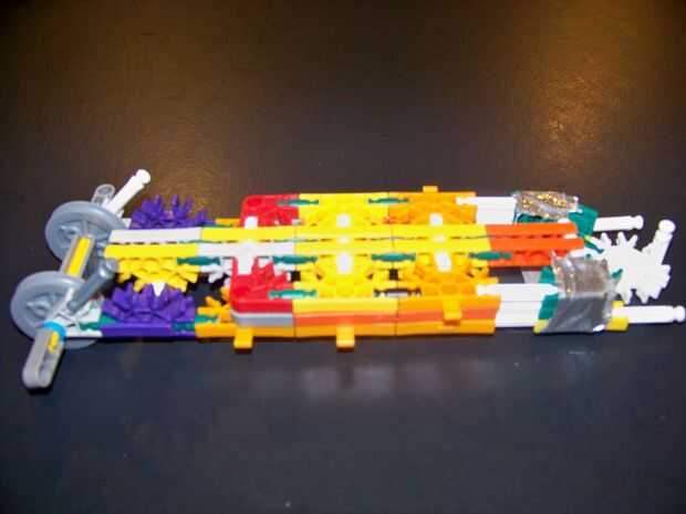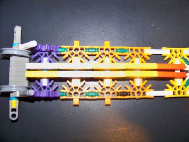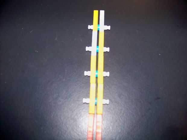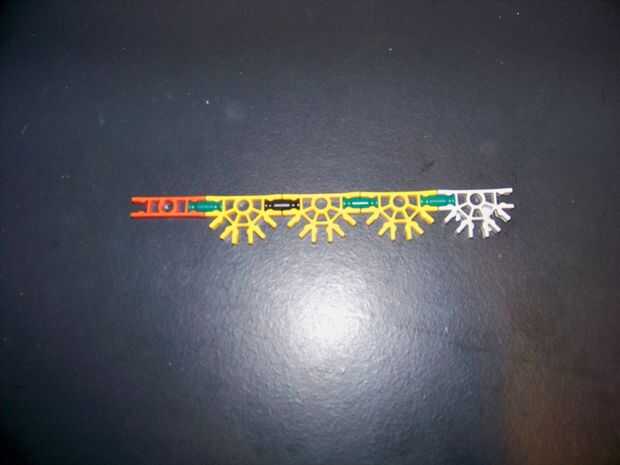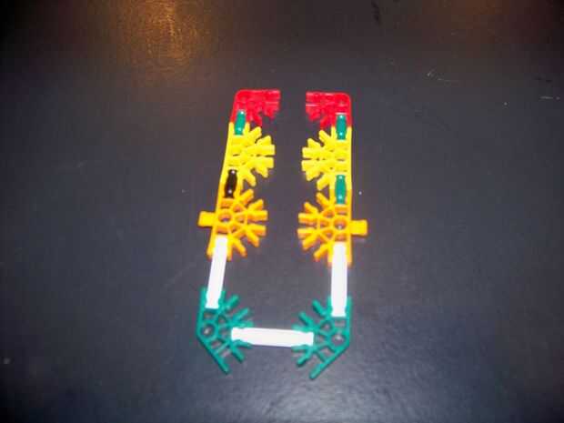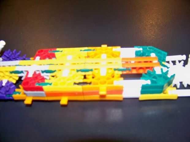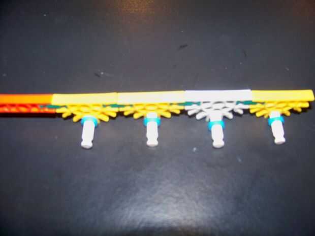 8. Coloque el paso 4 y 5 sobre lo construido y utilizar barras blancas para mantener la capa superior unida. También añadir barras verdes dentro de los conectores verdes, ahora no permanecen, pero necesitan estar allí.
