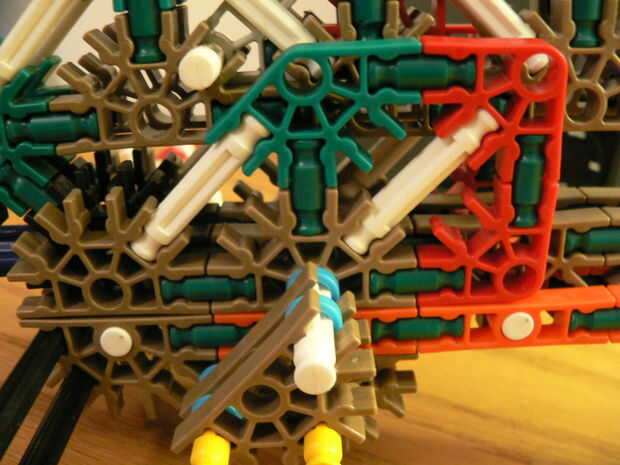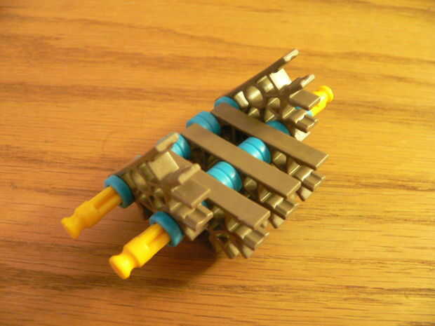 8 - montaje de los dientes a la bomba. Las barras blancas apenas deslizan en el agujero del conector amarillo de mediano