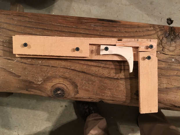 Para hacer el gatillo hacia el asa elaborado dos palancas. Una posterior levanta la cadena y una delantera empuja hacia arriba. El primer disparo tuvo el mal grano por lo reemplacé con madera contrachapada.
