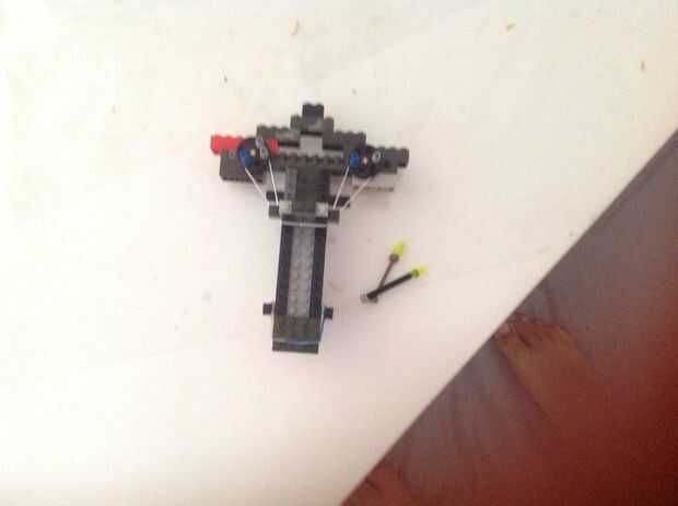 este es mi último ballesta, la luz a-1. Esta ballesta es bastante pequeña, sin embargo, es extremadamente potente para su tamaño, dependiendo de qué gomas que utilizas. Tengo un ladrillo de lego de 2 x 2 a 30 pies. La ballesta es solamente cerca de 8