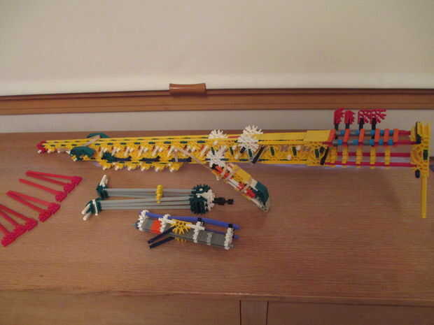 en este instructable te enseñaré cómo hacer una ballesta de miniatura como Da Vinci, pero sin las ruedas. Los materiales que usted necesitará son-Pinchos de madera dos-Bandas de caucho (20)-Cuatro palillos circulares (o rectangulares) que son 5 - 5 e