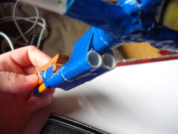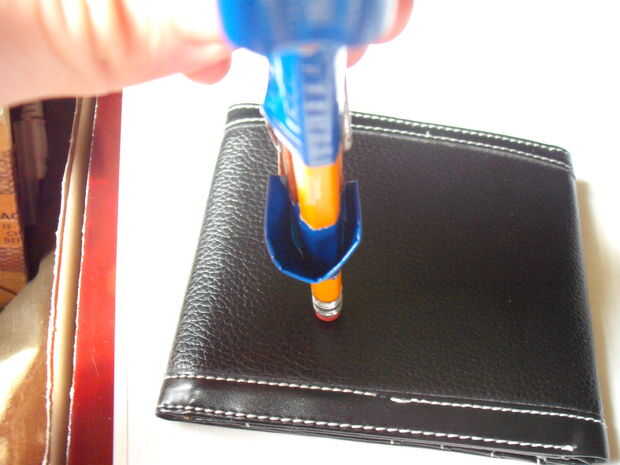 1. tomar el último lápiz y cortar por la mitad. Luego con cinta adhesiva las mitades juntas. Cinta adhesiva en la parte inferior de tu ballesta. 2. para la canasta de tomar un trozo de cinta, corte 2 esquinas y plegar juntos. Encontrar donde los pernos serán y montar la cinta para que captura y mantenerlos.