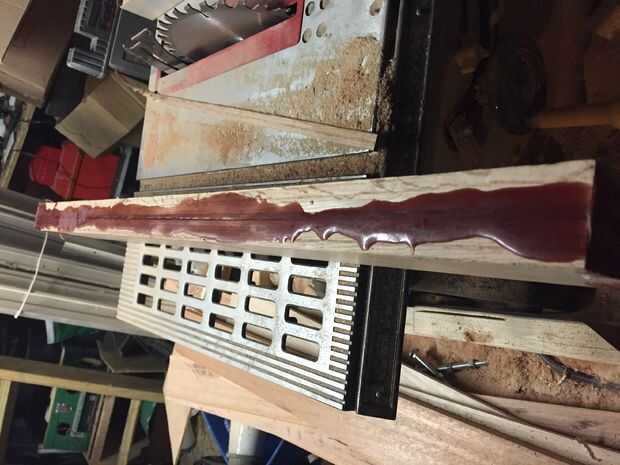 Después de que curado funcioné a través de la mesa vio a afeitarse cualquier exceso. Resina no lleve a cincelar o cepillar bien la mano, virutas y grietas.