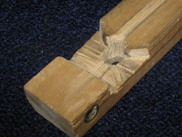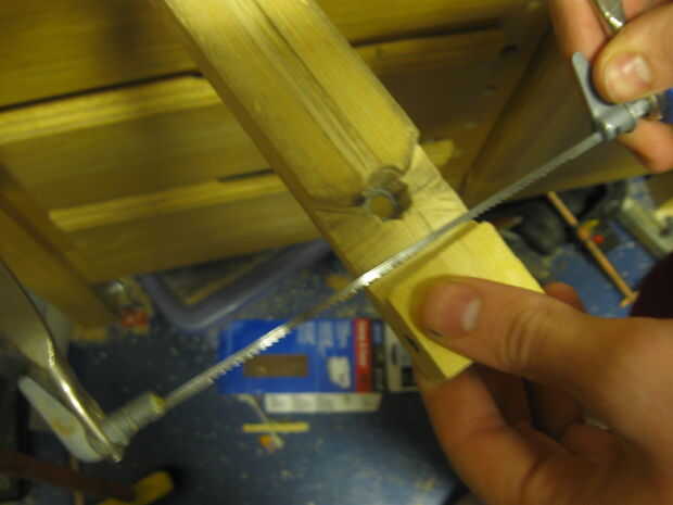 Encontrar una arandela que encaja alrededor del perno pequeño y pegamento caliente en la parte inferior del agujero en el otro lado de la madera.