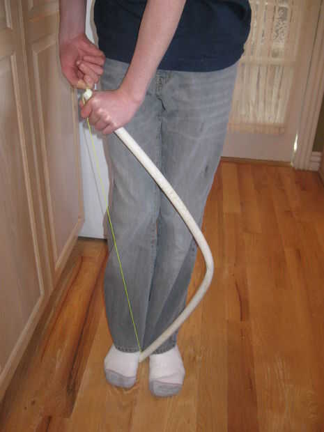 Por último, apoye un extremo de la tubería de PVC sobre el piso y empuje en la parte superior hasta que se deslice el nudo detrás de la rendija. (una vez más vea el diagrama)