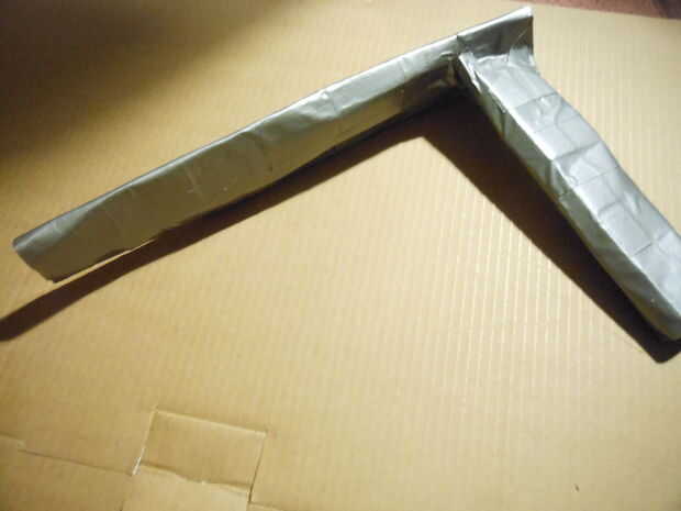 Conectar el barril y manejar, conecte un extremo del mango con un extremo del cañón que forma una L. Asegure firmemente con más cinta adhesiva.