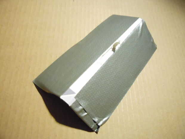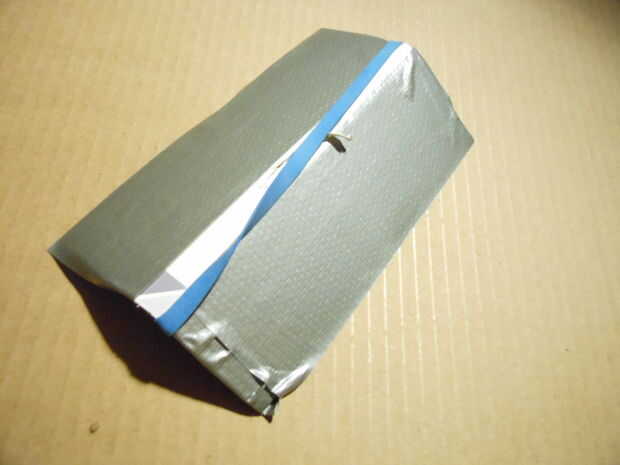 Para el torno, o el pedazo largo que sobresale del extremo del cañón, tome un pedazo de cartón que es de unos 5 cm por 15 cm y doblar por la mitad. Cubrir de cinta aislante. A continuación coloque una banda elástica en el redil. Entonces conducto extremos de la cinta los dos de la cartulina para fijar la cinta elástica.