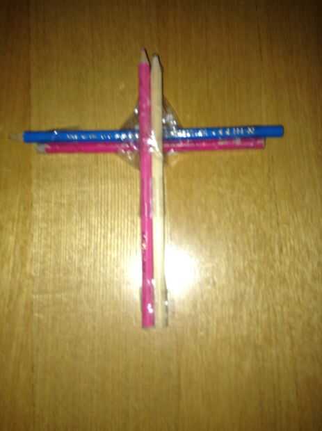 Con cinta adhesiva y cinta adhesiva los lápices juntos en dos