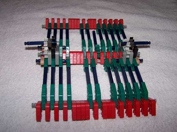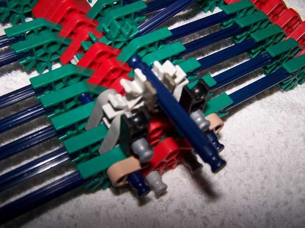 pic4-aquí está un lado en la foto. como se puede ver los conectores de pinza gris 1 son glipped sobre las varillas azules.