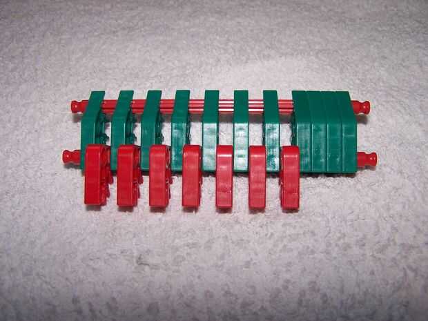Pic1-puesto 11 Conectores verdes sobre 2 barras rojo como esta y en este orden de espacio.