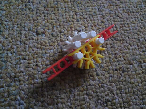 Esta una pequeña ballesta K'nex, hice después de mi hermano hizo un mucho, mucho más grande.Aquí está un vídeo de YouTube rápido que hice de la ballesta.Éste utiliza ocho 4" largo gomas. Dispara una pelota de ping-pong cerca de 30 pies lejos.Una piez