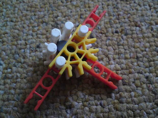 Esta una pequeña ballesta K'nex, hice después de mi hermano hizo un mucho, mucho más grande.Aquí está un vídeo de YouTube rápido que hice de la ballesta.Éste utiliza ocho 4" largo gomas. Dispara una pelota de ping-pong cerca de 30 pies lejos.Una piez