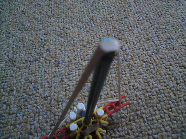 Esta una pequeña ballesta K'nex, hice después de mi hermano hizo un mucho, mucho más grande.Aquí está un vídeo de YouTube rápido que hice de la ballesta.Éste utiliza ocho 4" largo gomas. Dispara una pelota de ping-pong cerca de 30 pies lejos.Una piez