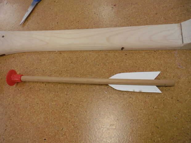 El nombre propio es perno J. uso un taco de madera recta agradable. Tratar de conseguir algún nogal si es posible, que hacen agradables pernos rígidos. Temporalmente Ensamble las mitades de ballesta con tuerca, gatillo y arco y cuerda. La Ballesta del brazo y coloque un bloque de madera entre la sierpe y el gatillo. Esto evitará que libere el mecanismo de como introducir el perno. Realmente era un instalado en algunas ballestas que consistía en un pequeño bloque en forma de madera unido a la caña del timón con una cadena de seguridad. Fue colocado actúa como una cuña para evitar que el disparo prematuro. Poner el eje del perno en la ranura de la tuerca de la leva y marque una línea de donde despeja la tuerca. Que suele ser sobre ¼ "o tan en ese punto, aquí es donde la pluma inferior comienza. La pluma estaba hecha de sólo dos paletas de madera fina para guerra ballestas (baratos en cantidades) y finas plumas dispuestos como una matriz de 3 ballestas de caza. El eje de la madera a una sierra y un corte cerca de un tercio de la longitud total del tornillo. Cortar algún material rígido pero flexible delgado (lámina de plástico) y hacer las remeras. Pegue el extremo sobre la pluma y tienes el tornillo casi listo. Había recogido una taza de la succión de un arco de juguete que se ajusta perfectamente en la espiga y caliente pegué al final. Encontrar una solución adecuada como una pieza de espuma o de goma para la punta. El perno hice vuela cerca de 25 pies con esa configuración, un montón de un juguete.