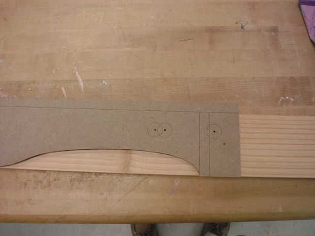 Plantillas de posición firmemente usando las líneas de guía grabada en ellos con los bordes y el centro Junta de la culata como registro marcas y dibujar líneas de contorno con un lápiz. Si hecho plantillas de MDF pequeños orificios son para algunos clavos usados para fijar el MDF en el lugar. Mire las líneas y ver si te gusta las formas resultantes y modificarlos si no adapten su estructura y estatura.