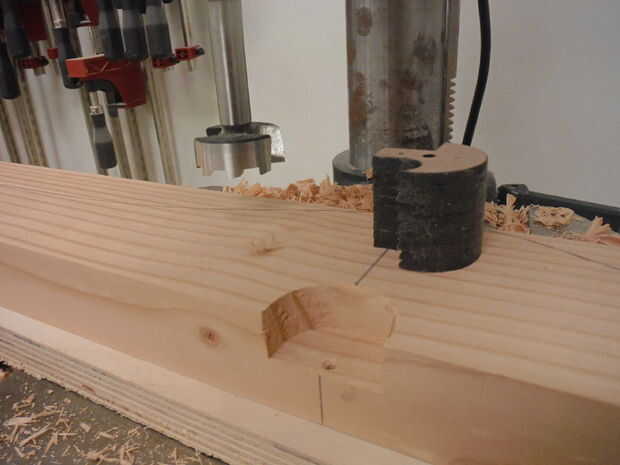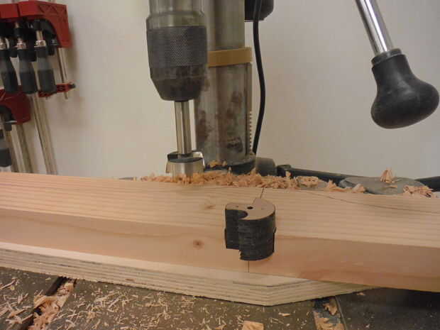 Ya que tienes las dos mitades marcadas usando plantillas, usted debe saber con precisión donde llevaba las ranuras de la tuerca. Usando un Forstner broca que empareja el diámetro de la tuerca y la pieza cortada como una valla de lado (para evitar rasgar hacia fuera) desglosar cuidadosamente alrededor de la mitad del espesor de la tuerca. Cuando las dos mitades de stock se unieron y sujeta la tuerca debe girar libremente en la cavidad. Utilice el tope de profundidad en el taladro a escondidas en la profundidad adecuada. Cuando perfore los agujeros para los pernos con la tuerca de la leva y gatillo. Nuevo la madera con algún desecho por lo que la salida del agujero no se astilló. Antes de perforar Asegúrese de que el receso de la cámara está alineado perfectamente y no oblicuamente. La práctica en algunos chatarra si no está seguro.