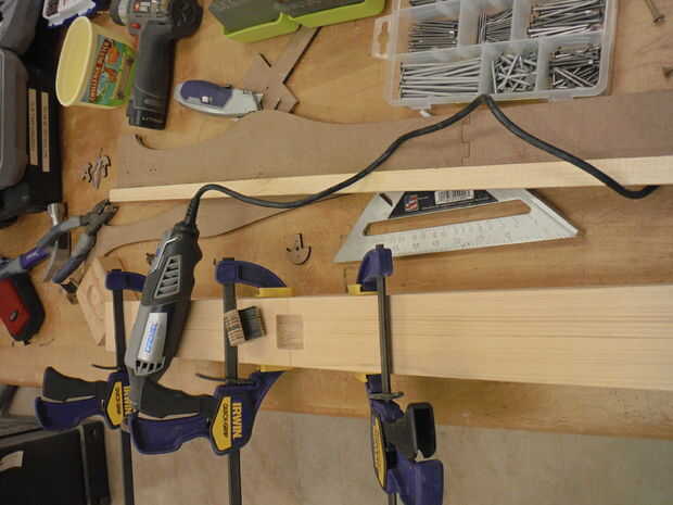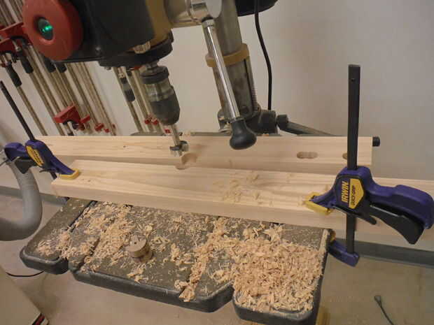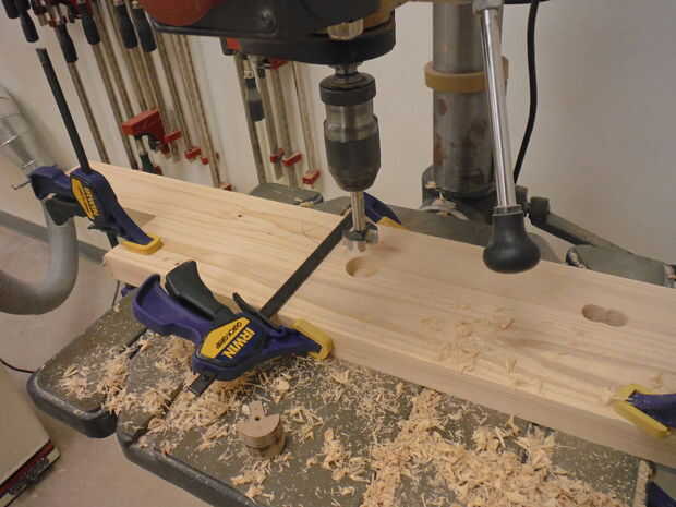 Mientras que en el taladro los dos delantero orificios utilizado para la proa y el amarre. Ahora es más fácil cuando la acción sigue siendo una pieza cuadrada de madera y los orificios resultantes son perpendiculares.