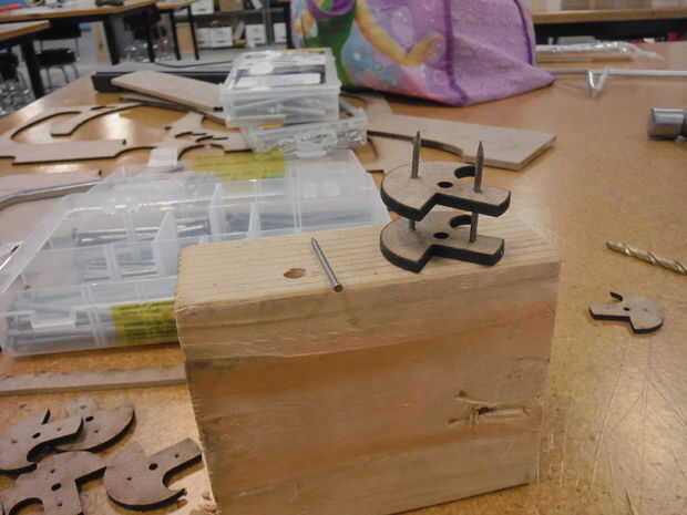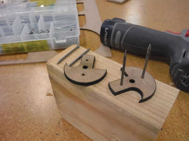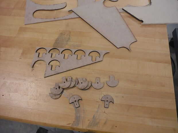 Uso de algunos desechos duro cortar una serie de perfiles de leva tuerca en el láser. Usted puede mezclar y combinar al final para arriba en el espesor adecuado. En este ejemplo hay algunos pequeños agujeros utilizados para los pernos de alineación de clavos. Usarlos y dejarlos en su lugar después de pegar. Utilizando las dimensiones proporcionadas, usted puede hacer una leva de metal o algún teflón en el torno si así lo quieren. Conjunto leva a un lado para secar en una pinza o tornillo de banco. Cuando está completamente seca es bien dura, la parte del vestido con un archivo y Redondee las esquinas, también cortadas la muesca en la parte superior con una lima redonda para que coincida con el diámetro del perno. No hacen apretada, el tornillo debe dejar "volar" sin fricción...