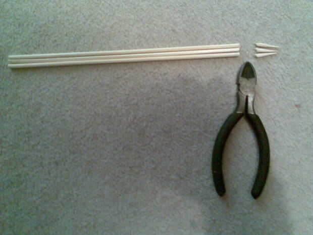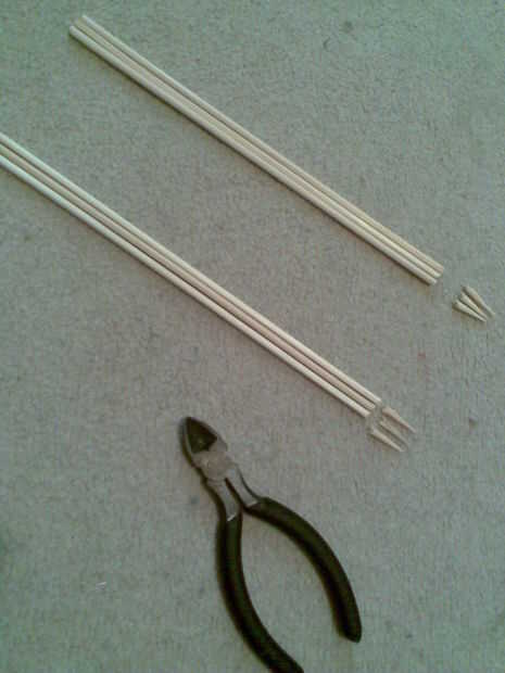 3 pinchos y cortar las puntas como se muestra. Luego repetir con 3 pinchos más.