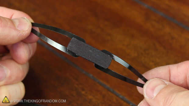 El primer paso del montaje es asegurar las pinzas a los soportes de madera con un poco de pegamento caliente, para que cuando se enfría, las extremidades del arco alejados uno del otro en forma de arco.